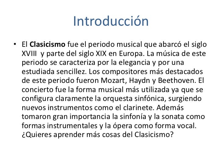 informacion sobre el clasicismo musical La música en el clasicismo