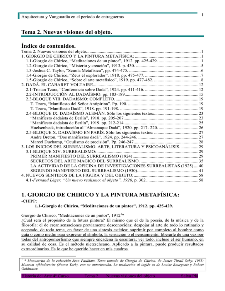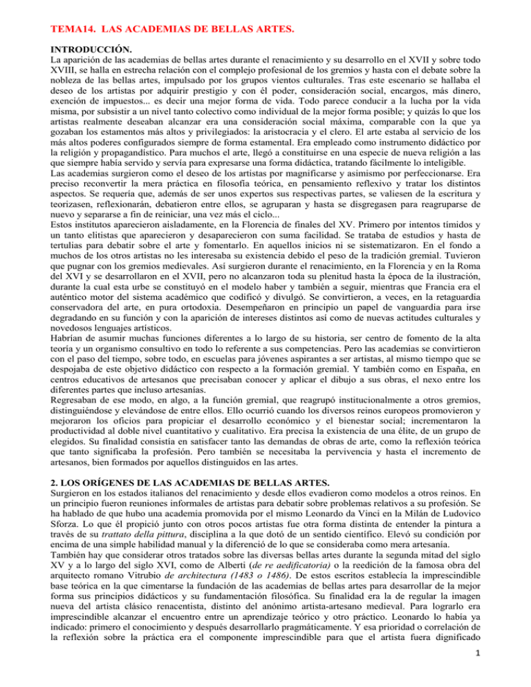 Resumen tema 2. Listado de asignaturas grado en historia del arte